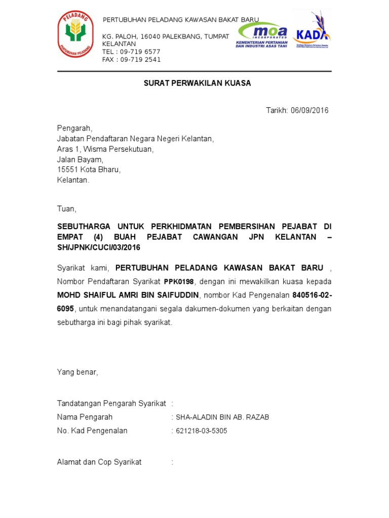 Contoh Surat Wakil Kuasa Urusan Jpj Sebutharga Bank Myeg Lhdn Majikan Keptennews Com